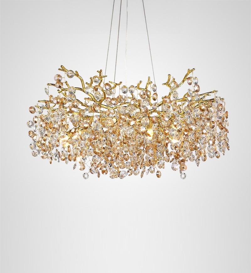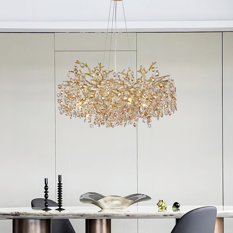 水晶 金屬的組合,奢華感 是優雅與輕奢的共鳴 柔光透過剔透的罩面, 暈染出一室的溫馨與綺麗