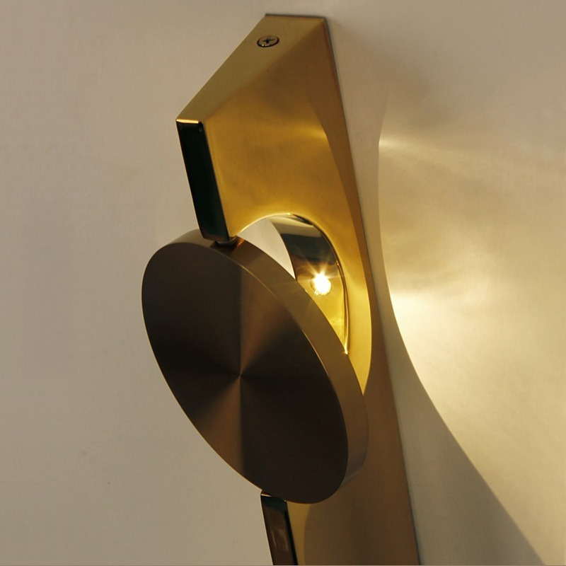 壁燈採用波浪形不銹鋼面,在牆面上營造出焦散光效果。反射器可 360° 旋轉,並且由於其拋光的背面,還能在牆面上形成圓形光束