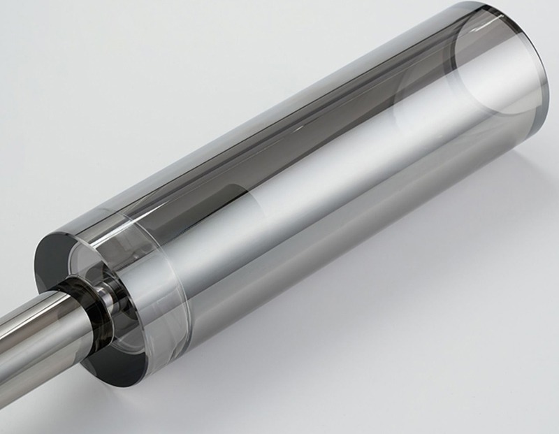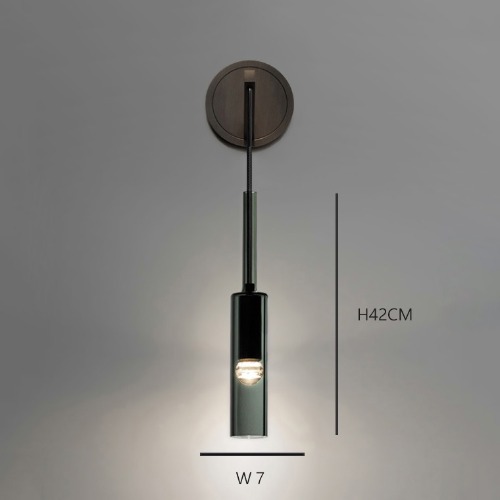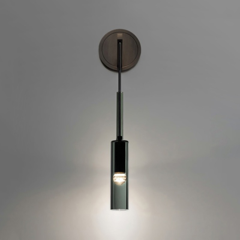 這款 壁燈修長的圓柱形燈罩由煙灰色玻璃和霧面金屬製成,散發出柔和的漫射光,營造出溫馨寧靜的氛圍。簡約的設計打造出輕盈實用的空間,但又不會顯得過於突兀