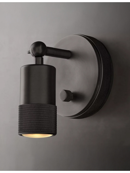 設計精巧簡潔,體現了工業極簡主義的概念。可旋轉的燈頭提供集中照明,而燈罩和底座上精細的菱形滾花紋路則增添了低調的裝飾感