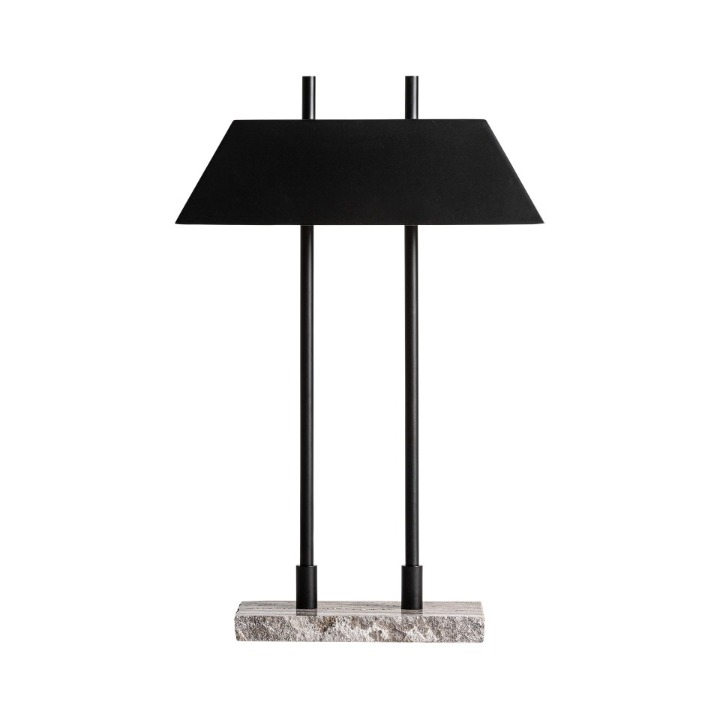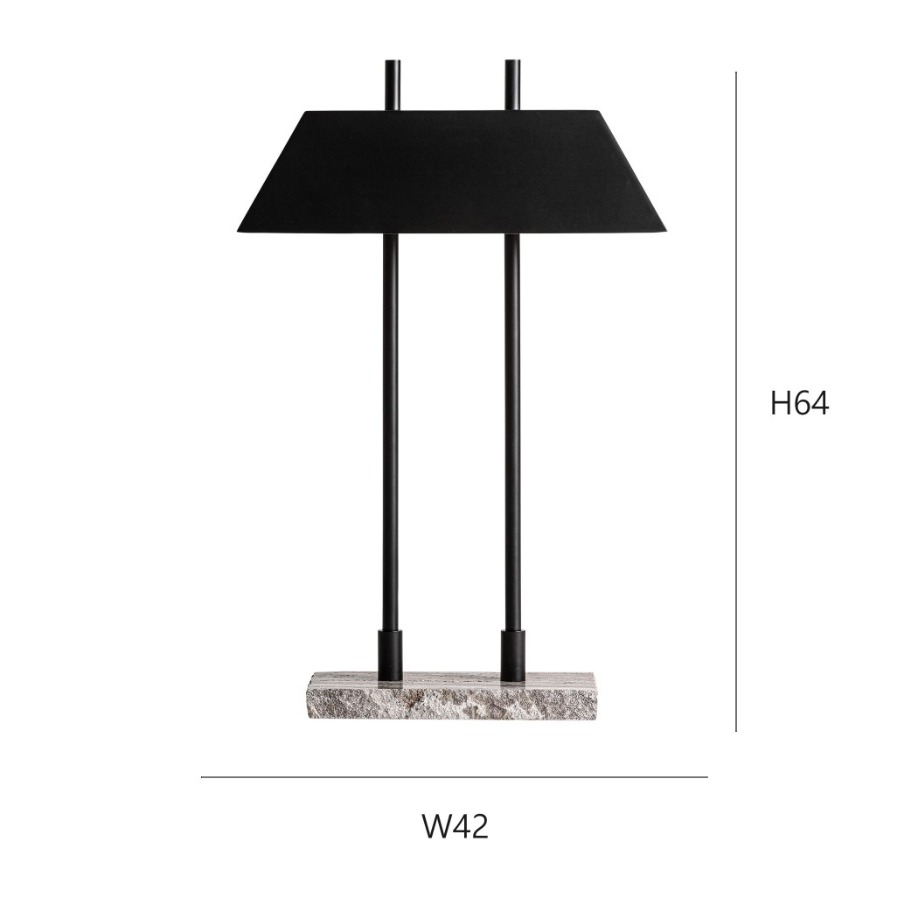 產品型號 HB-4164 名稱 佩特里灰洞石金屬桌燈 燈體尺寸 W42*D15*H64CM 材質 金屬 天然灰洞石 產品顏色 金屬-噴漆黑色 工藝 光源 E14 4W*2 3000K 空間 客廳 餐廳 書房 臥房 休閒區 等 層高 適用高度2米8左右空間高度 電壓 110-220V 下單前請告知 生產期 預售燈具 發貨週期60天左右 包裝 整體泡沫包裝 產地 中國制造 重量 以其幾何造型和現代裝飾藝術風格脫穎而出。灰色大理石與霧面黑色金屬的對比增強了視覺衝擊力