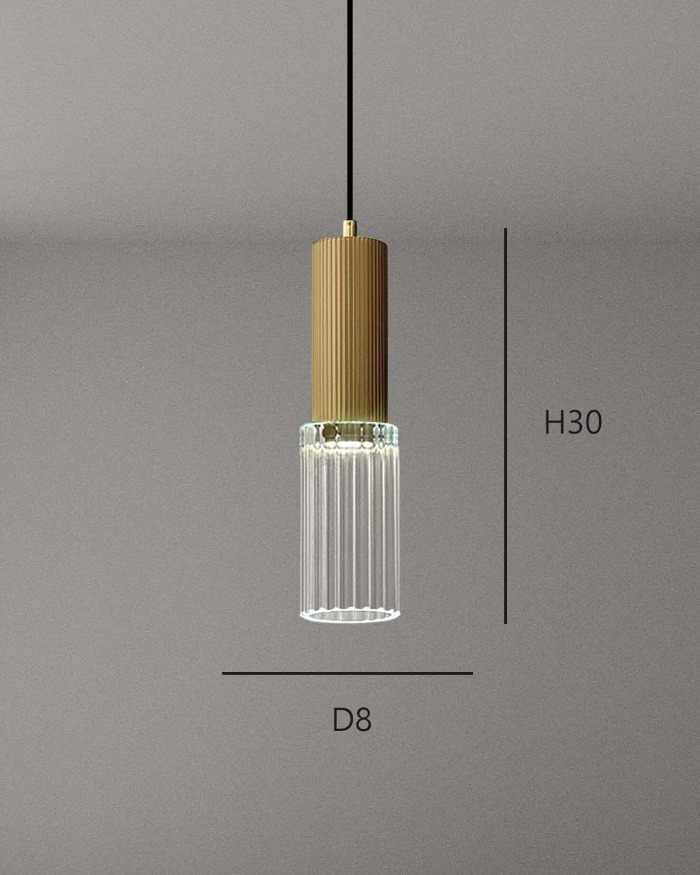 產品型號 GL-luceW001 名稱 奧爾森金屬玻璃吊燈-銅色-1 燈體尺寸 D8*H30CM 附吊線調節 材質 銅材 玻璃 產品顏色 金屬-銅色 玻璃-直紋理透明 工藝 光源 GU10 5W*1 3000K 空間 客廳 餐廳 書房 臥房 休閒區 等 層高 適用高度2米8左右空間高度 電壓 110-220V 下單前請告知 生產期 預售燈具 發貨週期60天左右 包裝 整體泡沫包裝 產地 中國制造 重量