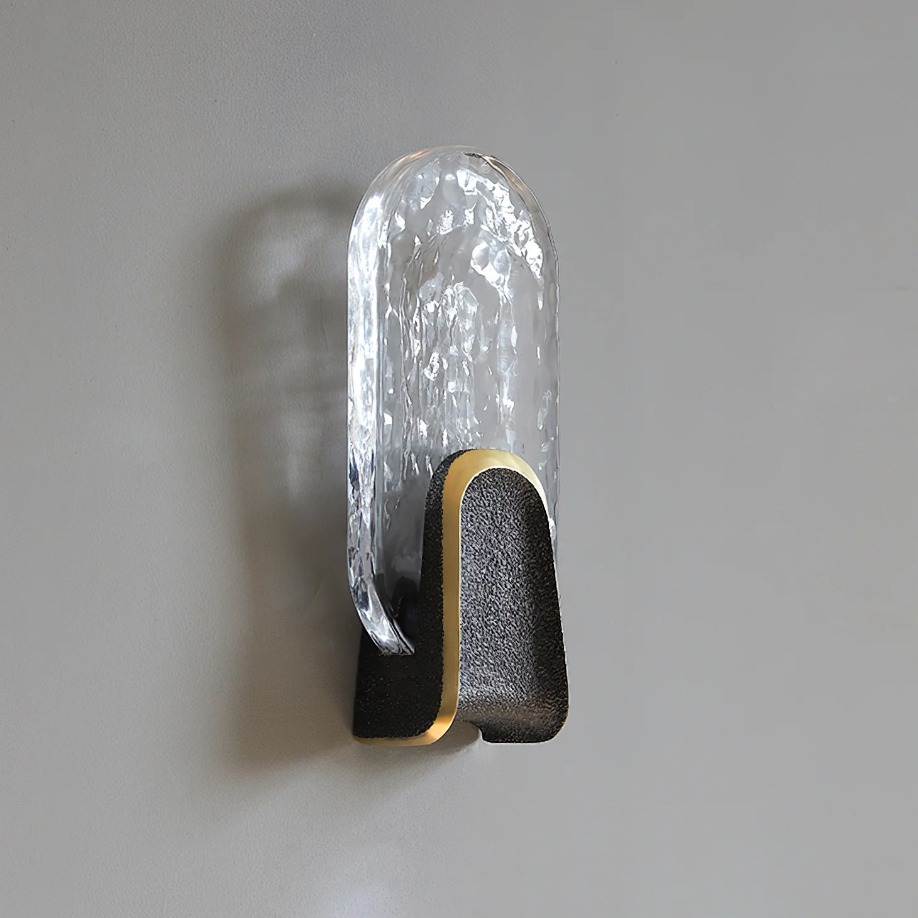 壁燈堪稱當代照明設計的傑作為室內空間增添優雅氣息。它採用厚實的純手工鑄造玻璃燈罩,飾以獨特的錘紋,能夠巧妙地漫射光線,營造出溫暖柔和的光暈