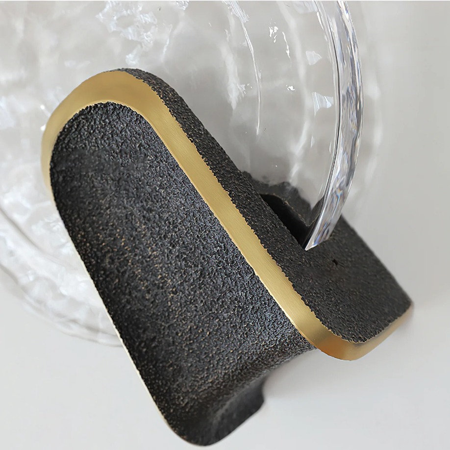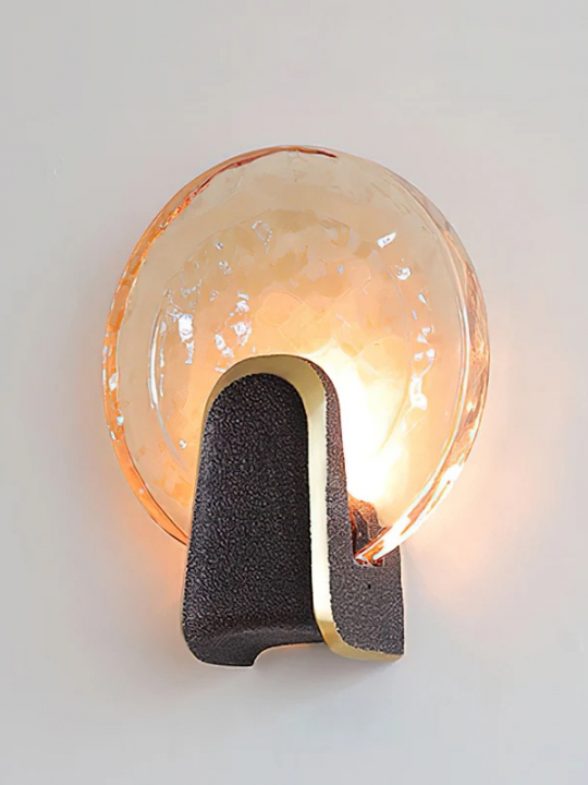 壁燈堪稱當代照明設計的傑作為室內空間增添優雅氣息。它採用厚實的純手工鑄造玻璃燈罩,飾以獨特的錘紋,能夠巧妙地漫射光線,營造出溫暖柔和的光暈