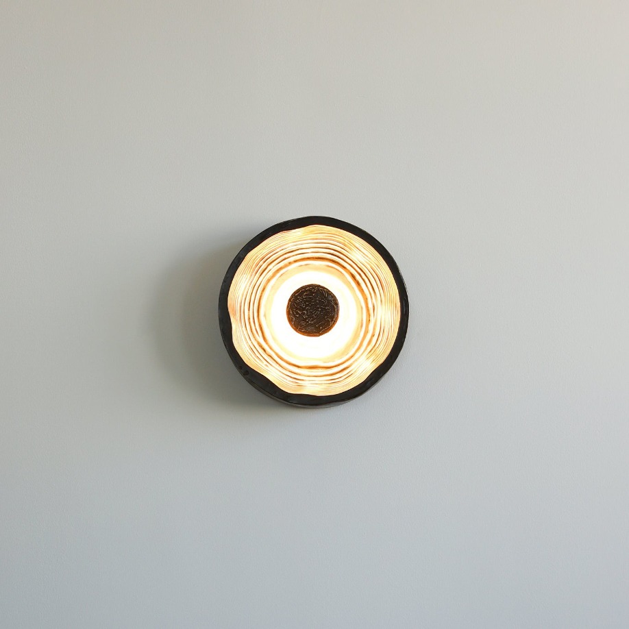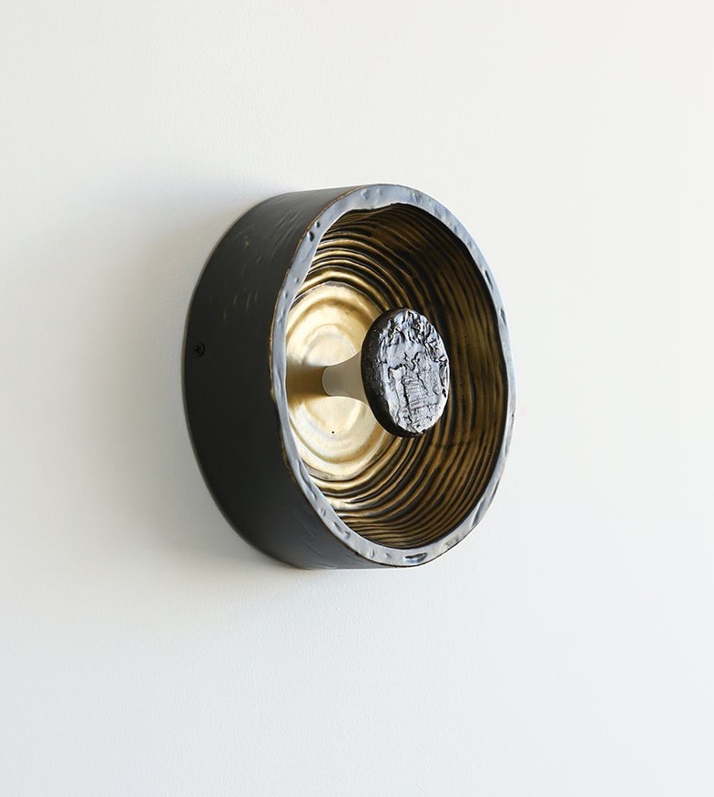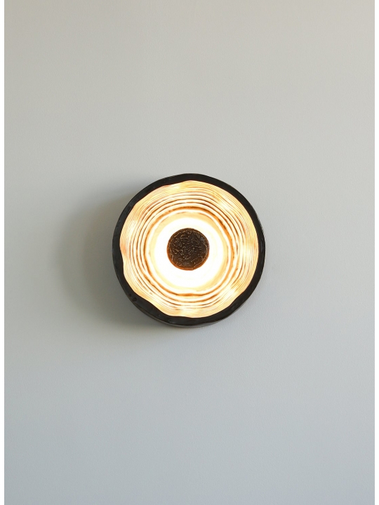 黑色壁燈以其獨特的純手工打造設計,散發出原始的藝術優雅氣息。燈體造型彷若熔融金屬,做舊的黑色紋理賦予其深邃而獨特的個性。醒目的金色內膽,表面柔和光滑,與外層形成鮮明對比,營造出令人著迷的光影交錯之美